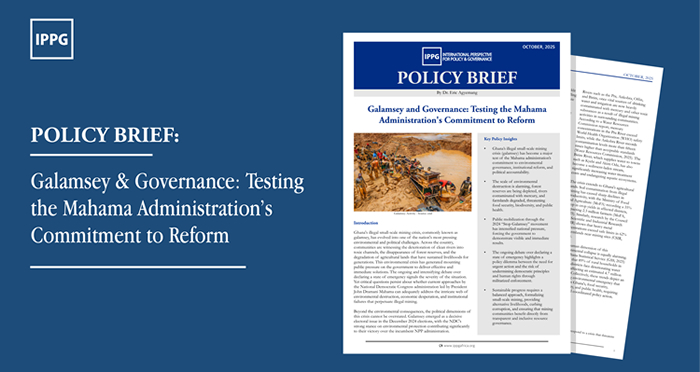 Read MoreThis policy brief by IPPG argues that Ghana’s escalating illegal small-scale mining crisis, popularly known as galamsey, has become a defining measure of President John Dramani Mahama’s determination…